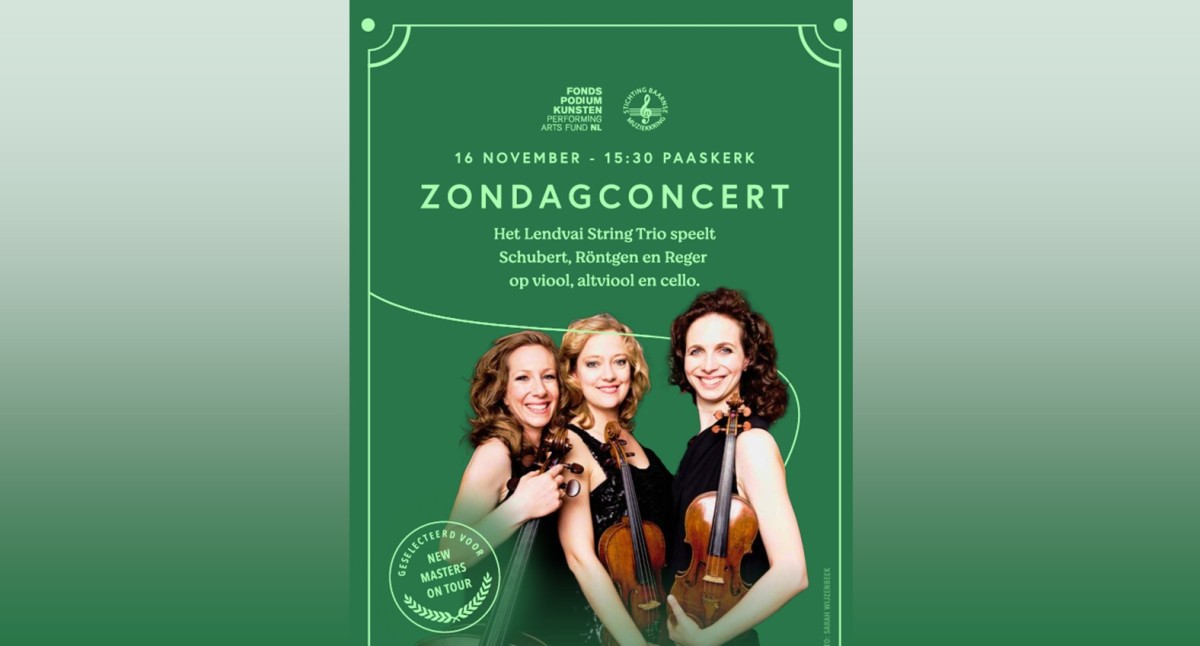 De Baarnse Muziekkring verwelkomt op 16 november om 15.30 uur in de Paaskerk het Lendvai String Trio met de violiste Nadia Wijzenbeek, concertmeester van het Radio Filharmonisch Orkest, de Fins/Zweedse altvioliste Ylvali Zilliacus en de Britse celliste Marie Macleod.