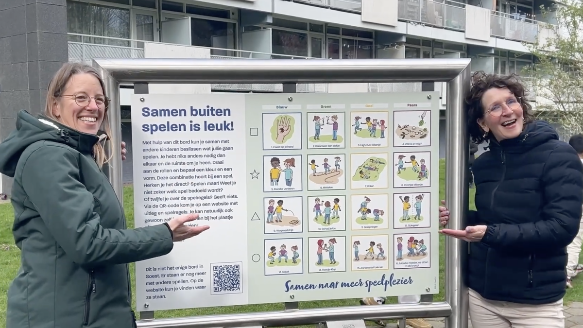 Met een team buurtsportcoaches wil Soest bewoners meer in beweging brengen, ook dicht bij huis en minder georganiseerd. De Speelstarter — een bord met 16 eenvoudige speelideeën zoals hinkelen, verstoppertje en klapspelletjes — helpt daarbij. Twee borden staan al in de Varenstraat; een derde wordt geplaatst op een plek die bewoners zelf aandragen.