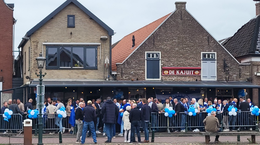 Gezellige stemming in Bunschoten-Spakenburg met veel blauwe en rooie supporters waaronder ook veel bezoekers van buiten het dorp. Het stadion van Spakenburg was uitverkocht wat betekent dat 8000 enthousiaste voetbalfans hun weg naar dit stadion hadden gevonden. Bij de rooien werd de live-tv uitzending ook gevolgd door aardig wat fans. Opvallend was dat de “drooglegging” die de afgelopen jaren tijdens de derby tot 15.00 uur van kracht was dit jaar door de gemeente niet was ingesteld. Dat gaf een gezellig beeld op de terrassen in het centrum.