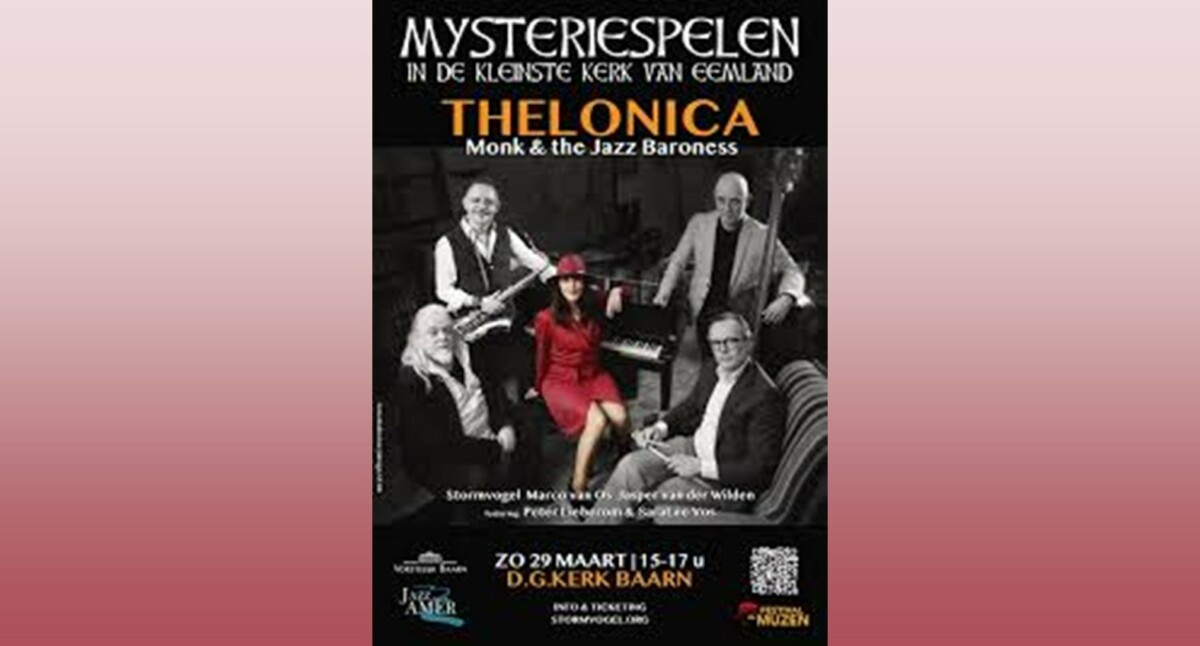 In de serie Mysteriespelen in het kleinste kerkje van Baarn dit keer het bijzondere verhaal van pianist Thelonious Monk en de vrouw die misschien wel zijn grootste bondgenoot werd: de jazzbarones Pannonica de Koenigswarter.