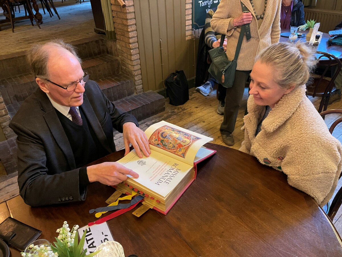 Ook een dame uit Huizen kwam vol goede hoop met haar bijbel naar Baarn. “Het is een erfstuk en we willen het verkopen. Op Marktplaats werd er zo enthousiast op geboden dat we de echte waarde willen weten. Straks verkopen we het voor te weinig.” Het missaal uit 1959 ziet er indrukwekkend uit: vuistdik, in rood leer gebonden en met glimmende sloten. “Zo’n boek wordt ook wel het ‘Sint Nicolaasboek’ genoemd. Echt waardevolle bijbels hebben zilveren beslag. Dit beslag is van koper. Het is een modern werk en heeft daarmee geen antiquarische waarde. Ik schat de waarde op vijftig euro.” Gelukkig is de eigenaresse niet teleurgesteld: “Op Marktplaats kregen we al 150 euro geboden dus dat is een mooie winst!” (Bron: Eemland1)