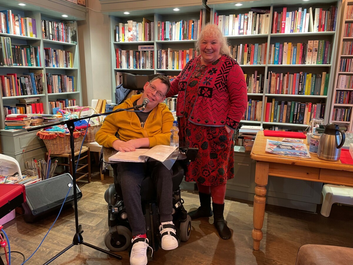 In het kader van ‘Gluren bij de Buren’ is een bijzondere artiest te gast in de Weggeefwinkel. Het is de rapper Jordi Meewezen die optreedt onder de naam ‘Big Thoughts’. Vorig jaar trad hij op in het Nutsgebouw aan de Penstraat. Jordi zit in een rolstoel en schrijft over zijn leven en de dingen die hij meemaakt als rolstoelgebonden jonge man. “Ik maak vaak mee dat mensen mijn cognitieve vermogens onderschatten. Daar maak ik dan een tekst over. Altijd in het Engels. Daarmee kan ik meer mensen bereiken. En ik kan er beter de juiste woorden vinden dan in het Engels.” Jordi wordt begeleidt door zijn vriend Arthur op de piano. Samen zongen ze hun jarige gastvrouw van harte toe.