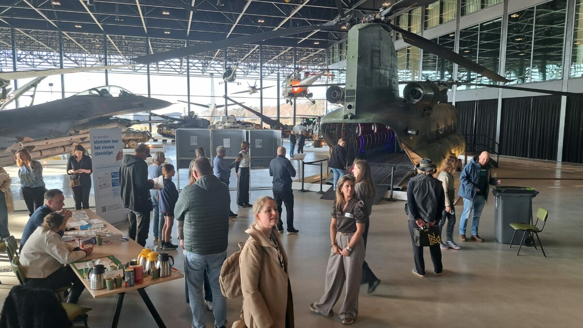 Om 16.30 uur staat er nog altijd een een lange rij voor de Chinook, het ‘werkpaard van de luchtmacht’, op de begane grond van het Nationaal Militair Museum. De drie ‘doodnormale’ stemhokjes die extra naast de chinook zijn opgesteld, blijven de hele dag leeg. Iedereen wil de chinook in. En dat er dan even in de rij moet worden gewacht, maakt niemand iets uit.